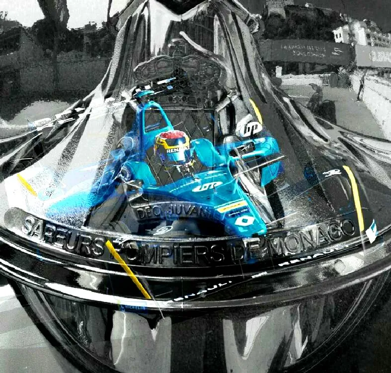 Photo de reflet de formule 1 à Monaco casque de pompier par Vincent Dessaint photographe