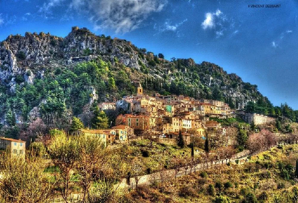 Photo de montagne en France village église falaise montagne par Vincent Dessaint photographe