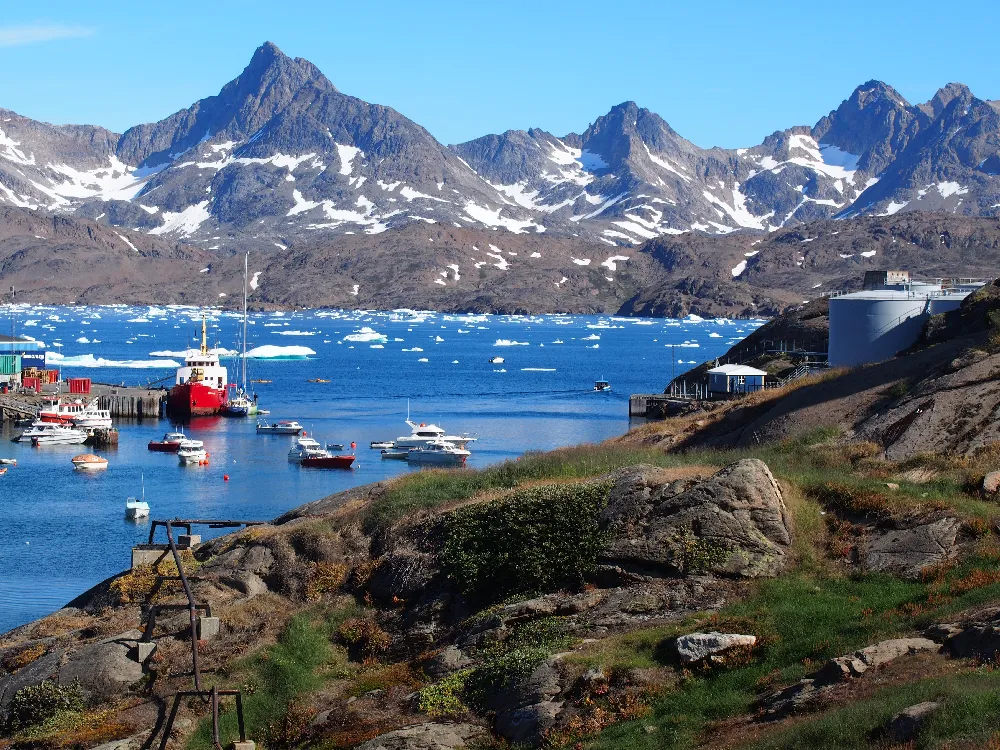 Photos de fjord du Gorenland, glace montagnes enneigées bateau rouge barque rouge par Vincent Dessaint photographe