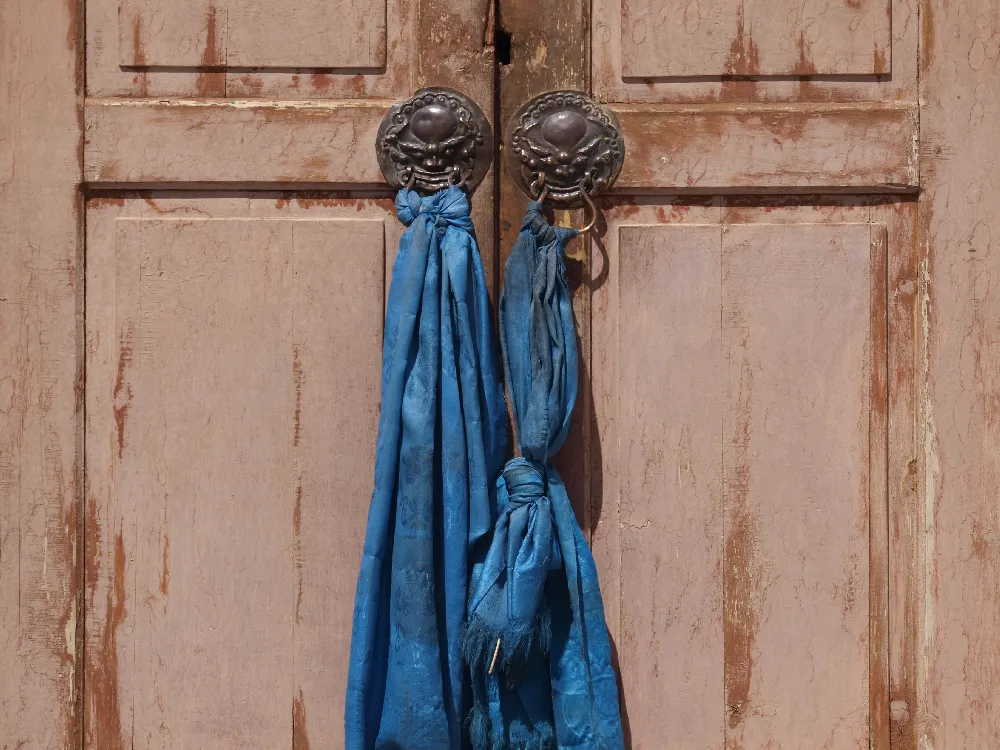 photo de porte mongole heurtoir foulard bleu par Vincent Dessaint photographe