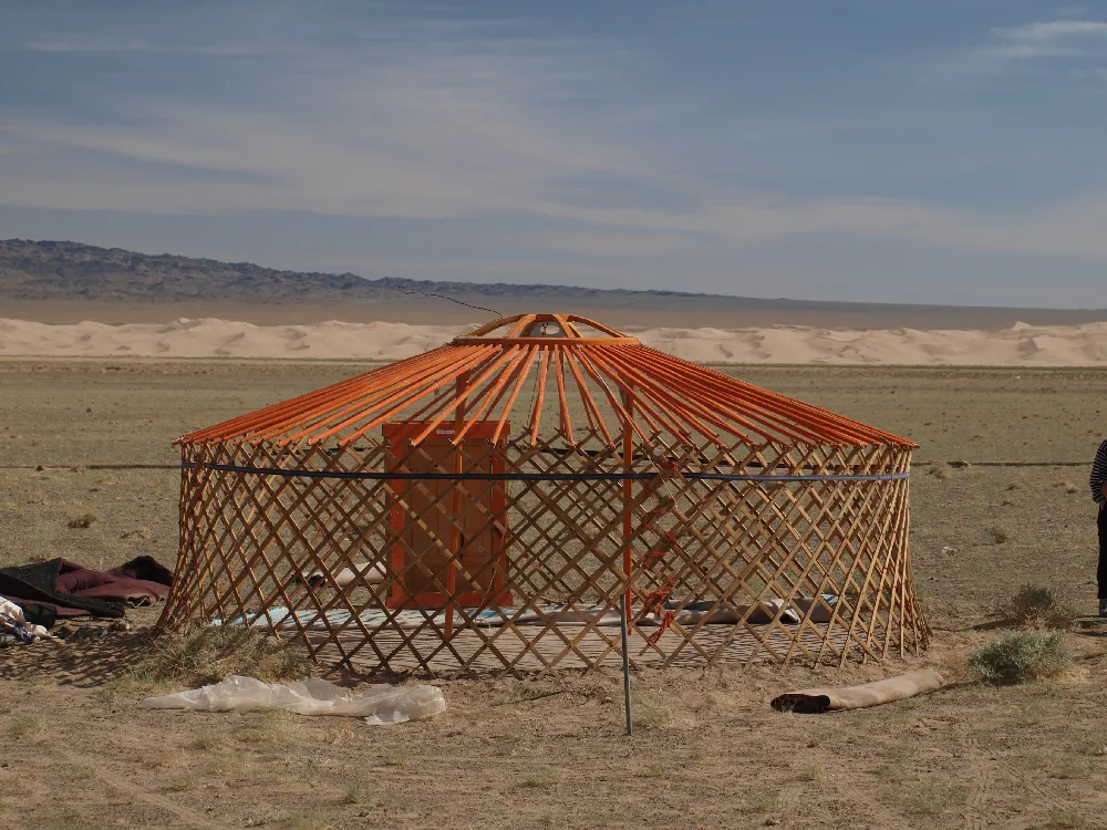 photo de yourte en construction ossature de yourte par Vincent Dessaint photographe