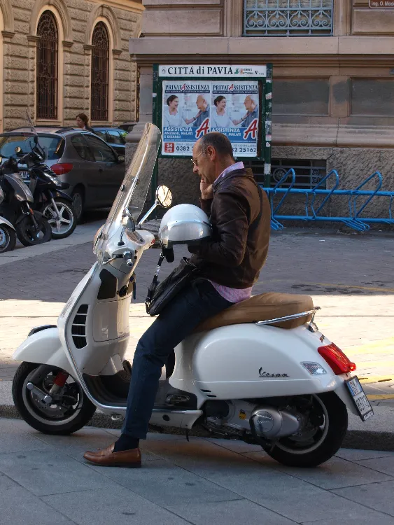 homme italien au téléphone en scooter par Vincent Dessaint photographe